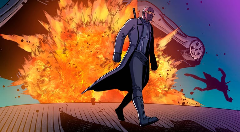 The Heist On Alpha Graphic Novel (Part 1) is available digitally as part of a multi-asset NFT on Cardano (includes a PFP + theme music), and also physically as a limited print edition 74 page book.